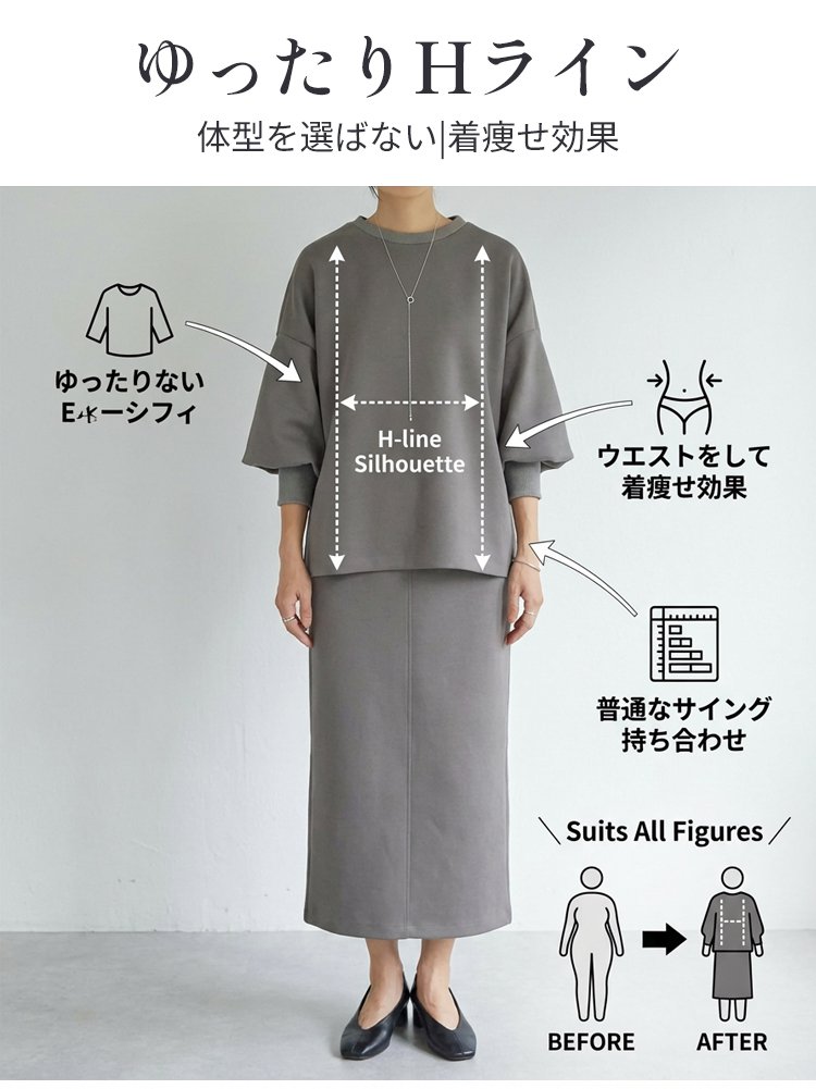 ラウンドネックランタンスリーブスウェットシャツ