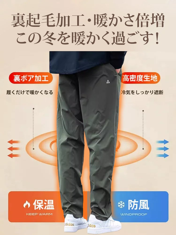 【冬の裏起毛タイプ】保温メンズ トレッキングパンツ